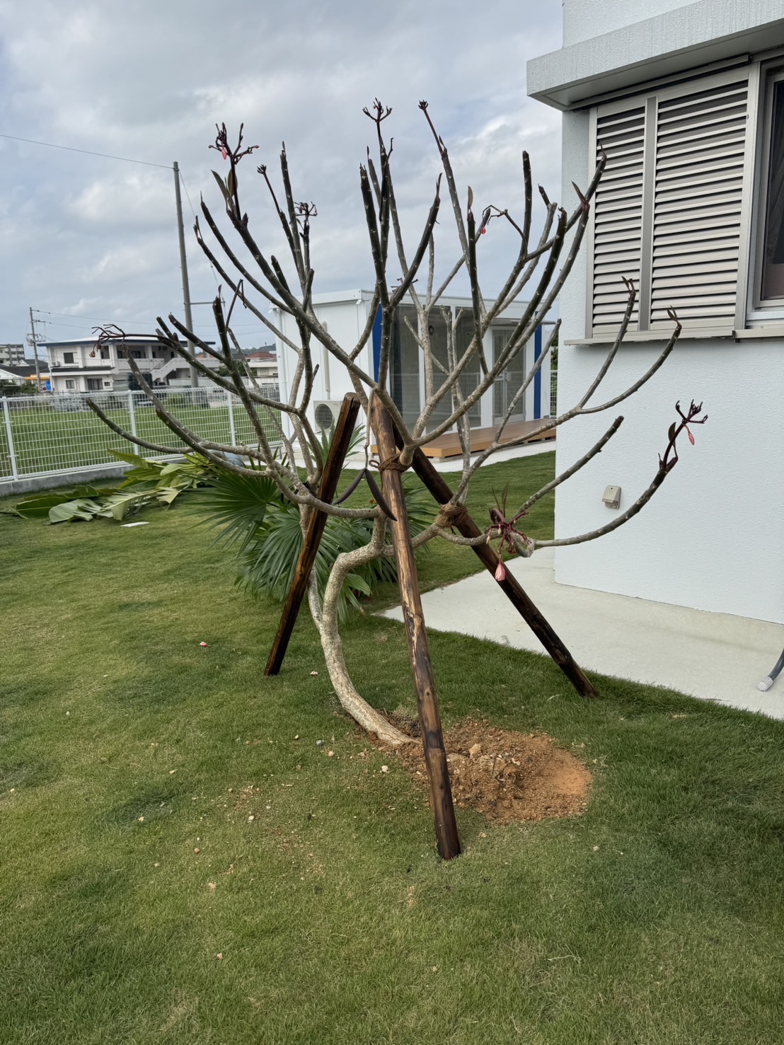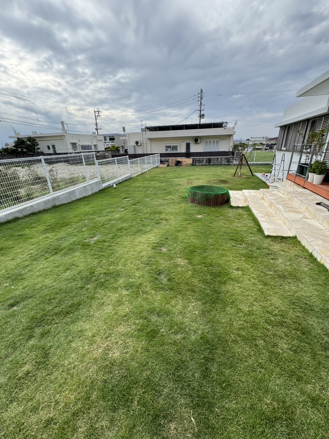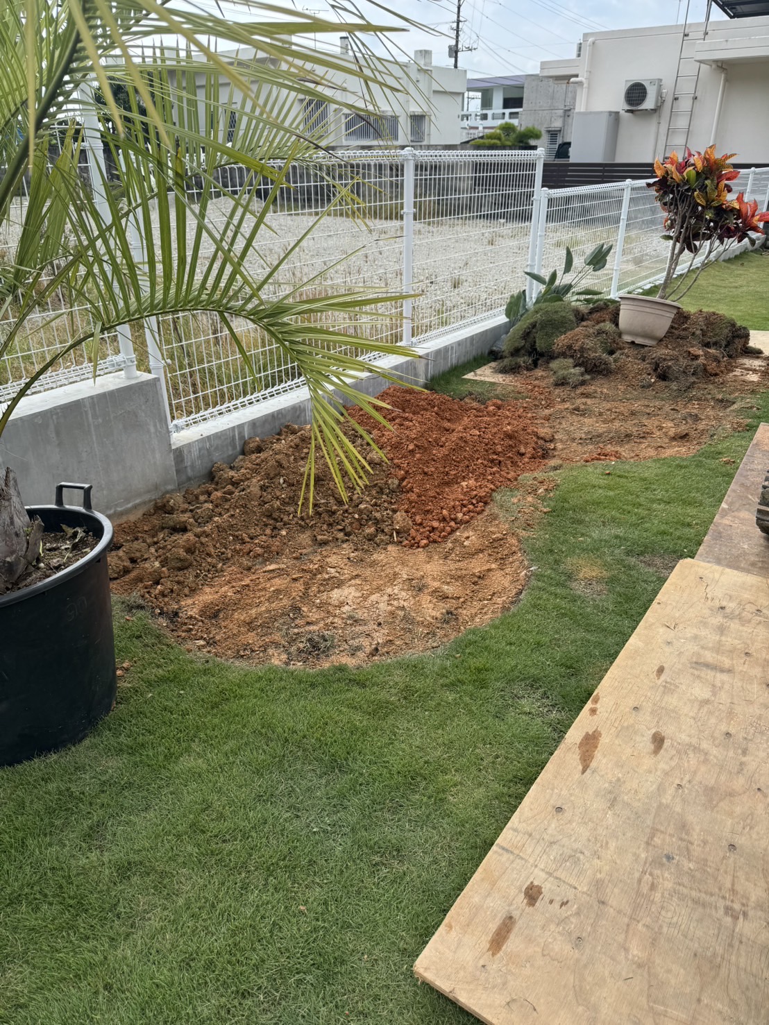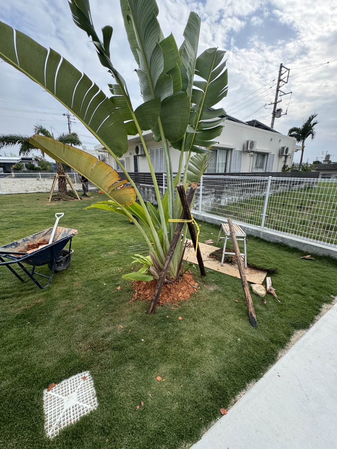 もともと広々とした庭でしたが、お客様がココスヤシ好きということで、ココスヤシを主役にしたドライガーデンへ🌿各ポイントにはナツメヤシとプルメリア、旅人の木を配置し、南国リゾート感を演出✨🌴足元には琉球石灰岩の踏み石を据え、自然な動線と表情をプラス。庭全体の印象がぐっと引き締まり、雰囲気が大きく変わりました😊